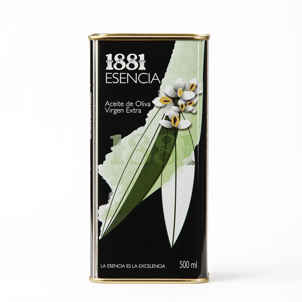 Aceite de Oliva Virgen Extra 1881 «Esencia», en lata de 500 ml. Con un sabor excepcional, elaborado con aceitunas de la mejor calidad. Un aceite que captura la esencia de la tradición y la excelencia. Producto premium ideal para realzar tus platos.